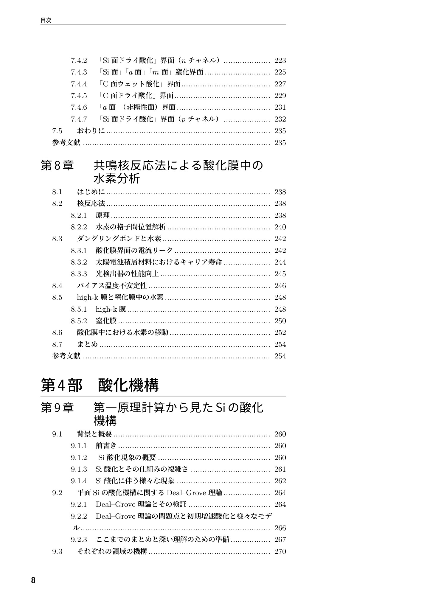 本書は、主にSiおよびSiCの酸化機構、さらにそれによって形成されたSiO2と界面の特徴について、酸化に伴って起こる様々な現象の物理的理解に関する議論と、さらにその理解に基づいて課題をどのように克服したらよいのかという議論から構成されています。