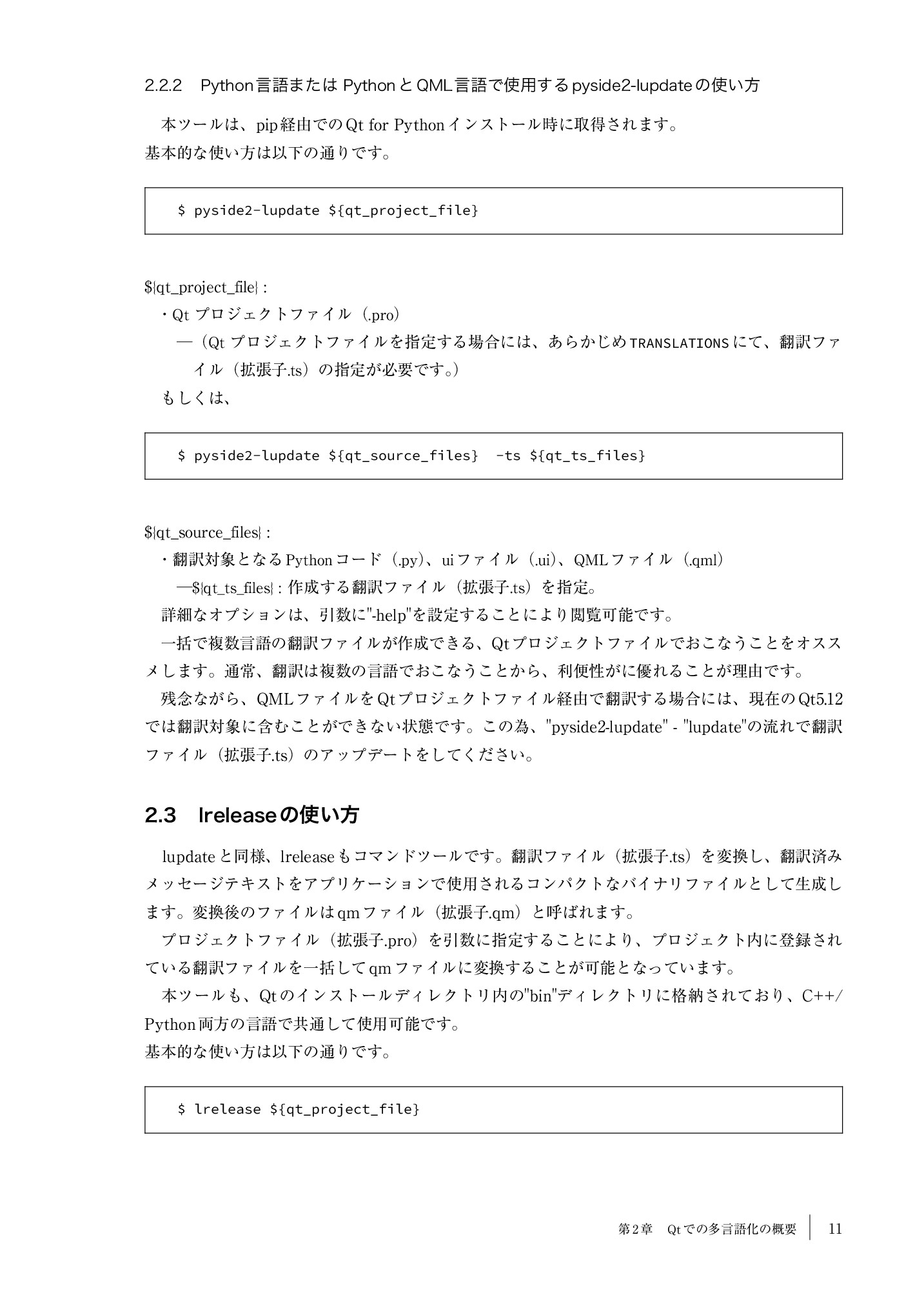 Qtの強みであるさまざまな言語を使用できるunicodeのサポートや、ユーザーインターフェース画面の翻訳が簡単にできるTool群、コード内の文字列を多言語化できる簡単な仕組み、C++でもPythonでも共通で使用できるユーザーライクな翻訳対応ソフトなどを中心に解説しています。
