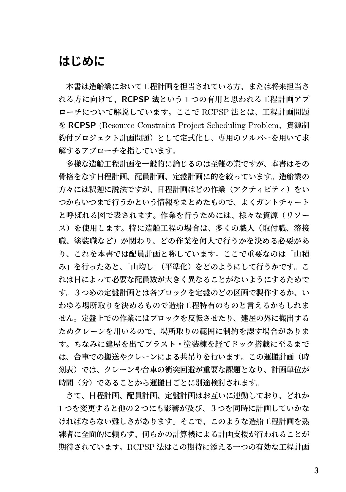 本書は造船業における工程計画担当者へ向けた実用的な指南書です。日程計画、配員計画、定盤計画という複雑な要素を、熟練者の経験だけでなく、計算機による支援で最適化する新しいアプローチを提案しています。